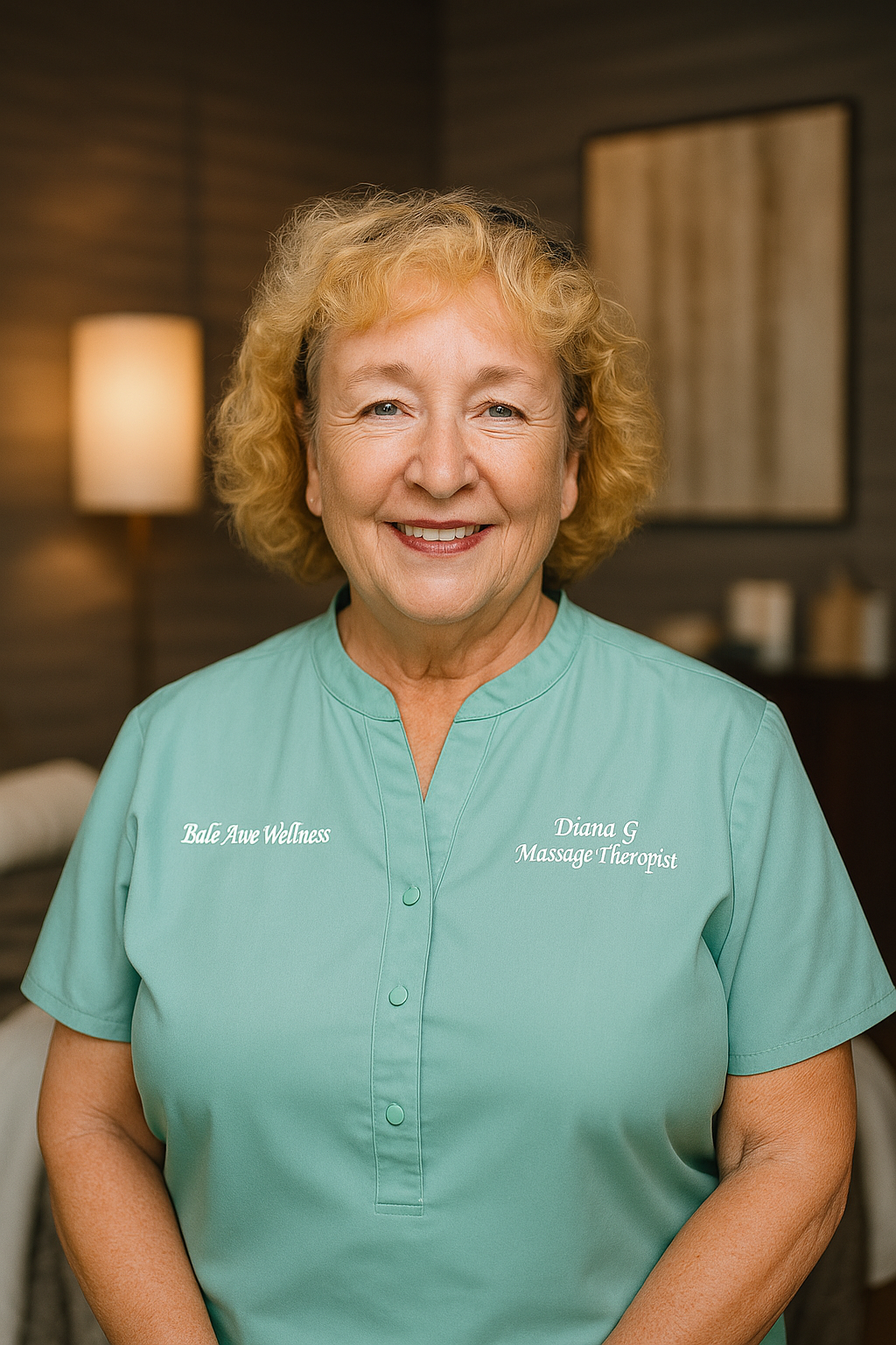 LMT With 14 years of experience, Diana specializes in deep tissue, sports, relaxation, prenatal, and pain management massage. She also incorporates Rolfing techniques to help release tightness and restore mobility. Diana takes time to understand each client’s individual goals, creating personalized sessions that promote lasting relief and freedom of movement. Before becoming a massage therapist, Diana taught middle school math — an experience that deepened her patience, attention to detail, and genuine care for helping others reach their potential. She brings that same thoughtful, compassionate approach to every session, helping clients feel both cared for and empowered in their wellness journey.